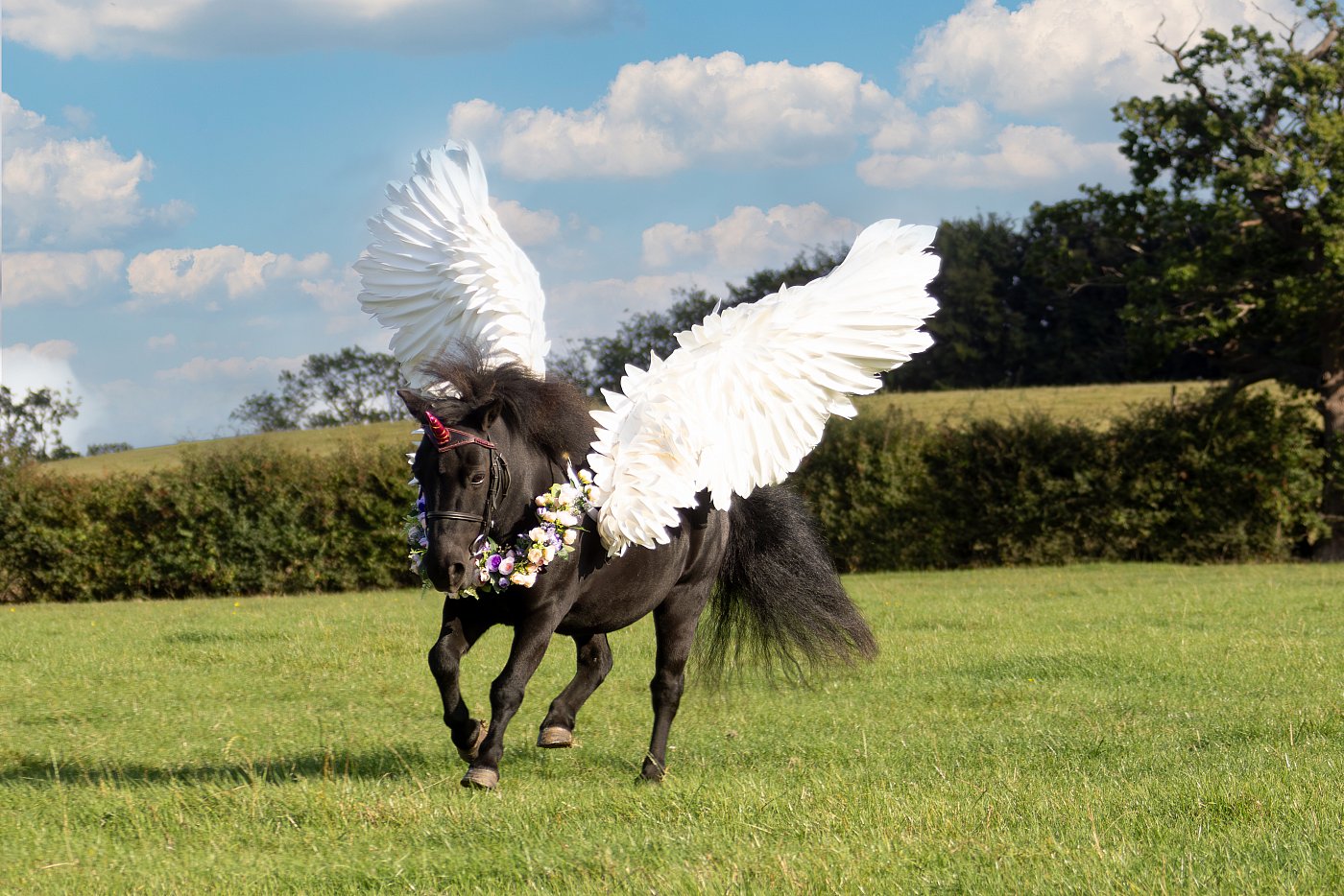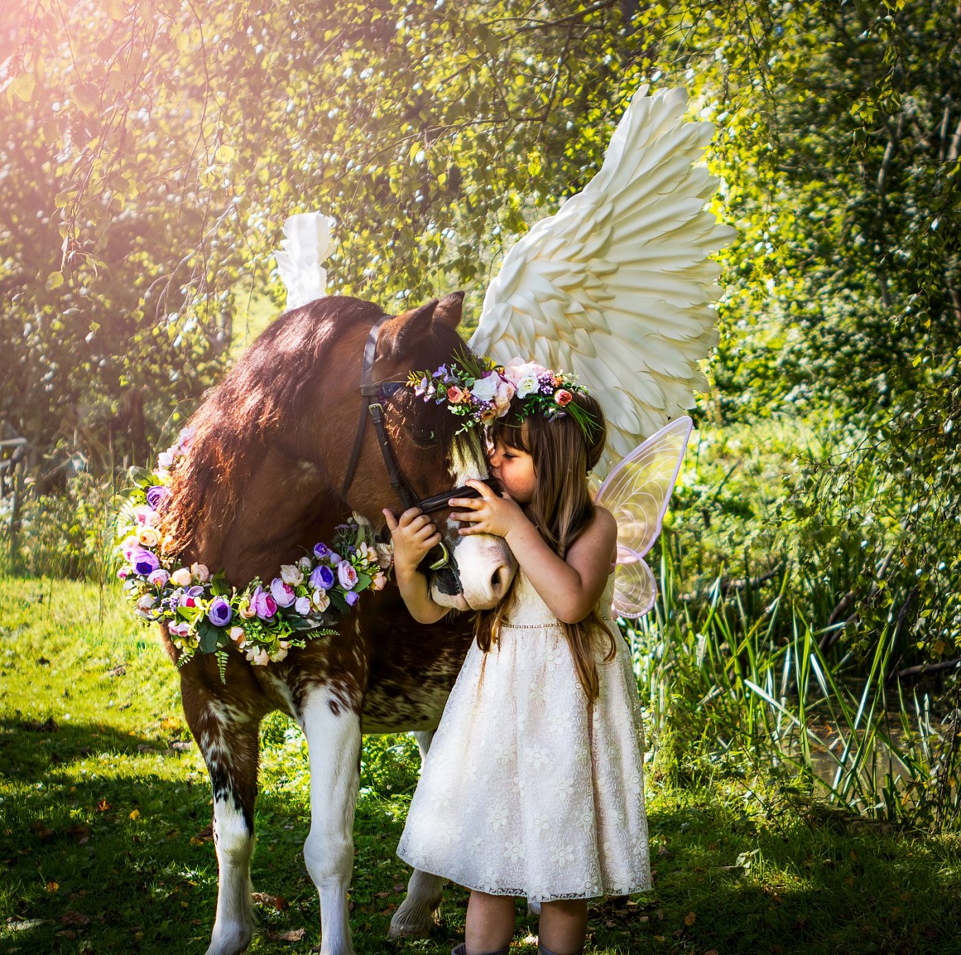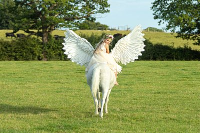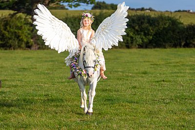 use of professional 1.5 m white Pegasus wings + flower wreaths